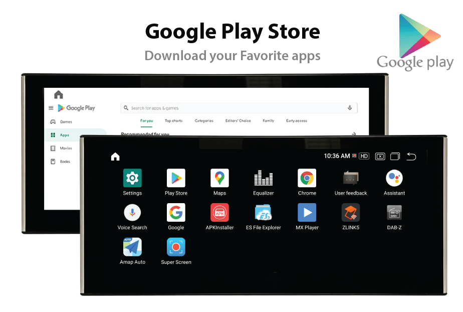 Google Play Store Access – Install your favorite apps such as Spotify, Waze, YouTube, Netflix, and more.